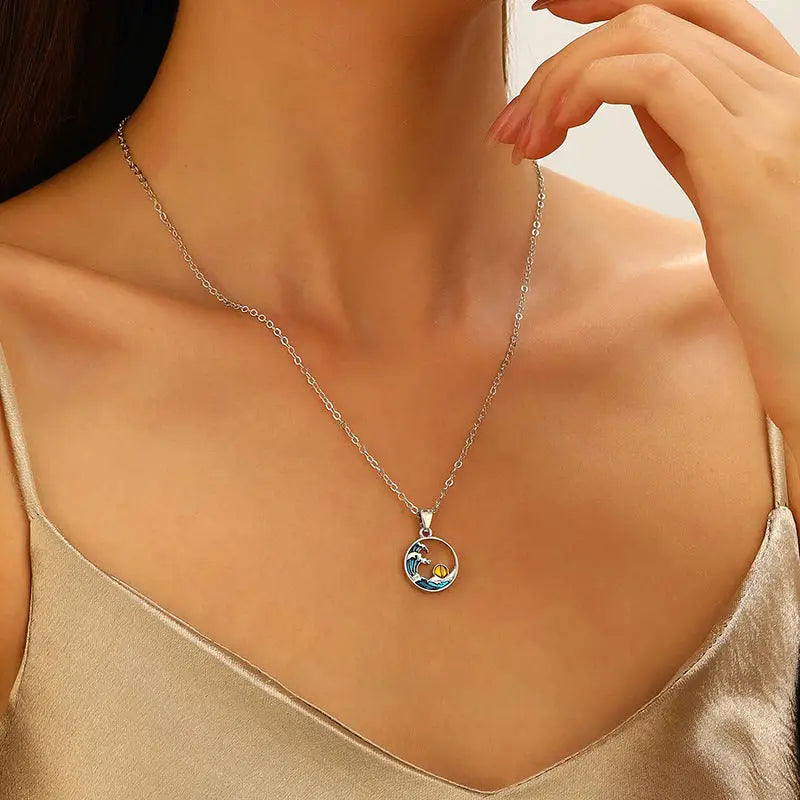 Blue Water Drop Pendant Necklace with Silver Chain - LauBelle Brand