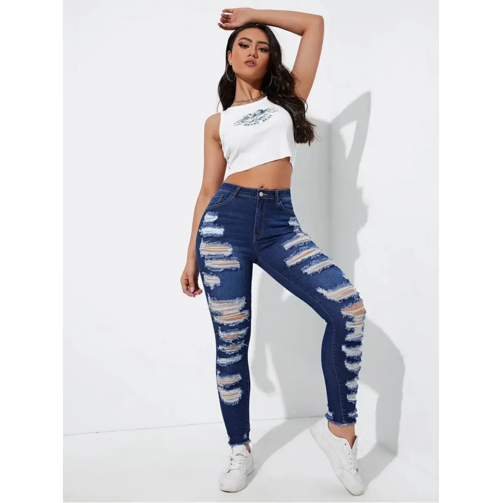 Get ready to rock the perfect fit with our Ultimate Slim Jeans for Women. With a sleek and modern design, these jeans will hug your curves in all the right places, giving you a flattering silhouette. Made from high-quality denim, these jeans are durable and comfortable for all-day wear. The slim fit and mid-rise waist make these jeans versatile for any occasion, whether it's a casual day out or a night on the town. Available in a variety of sizes and washes, our Ultimate Slim Jeans for Women are a wardrobe essential. Upgrade your style game with these must-have jeans.
