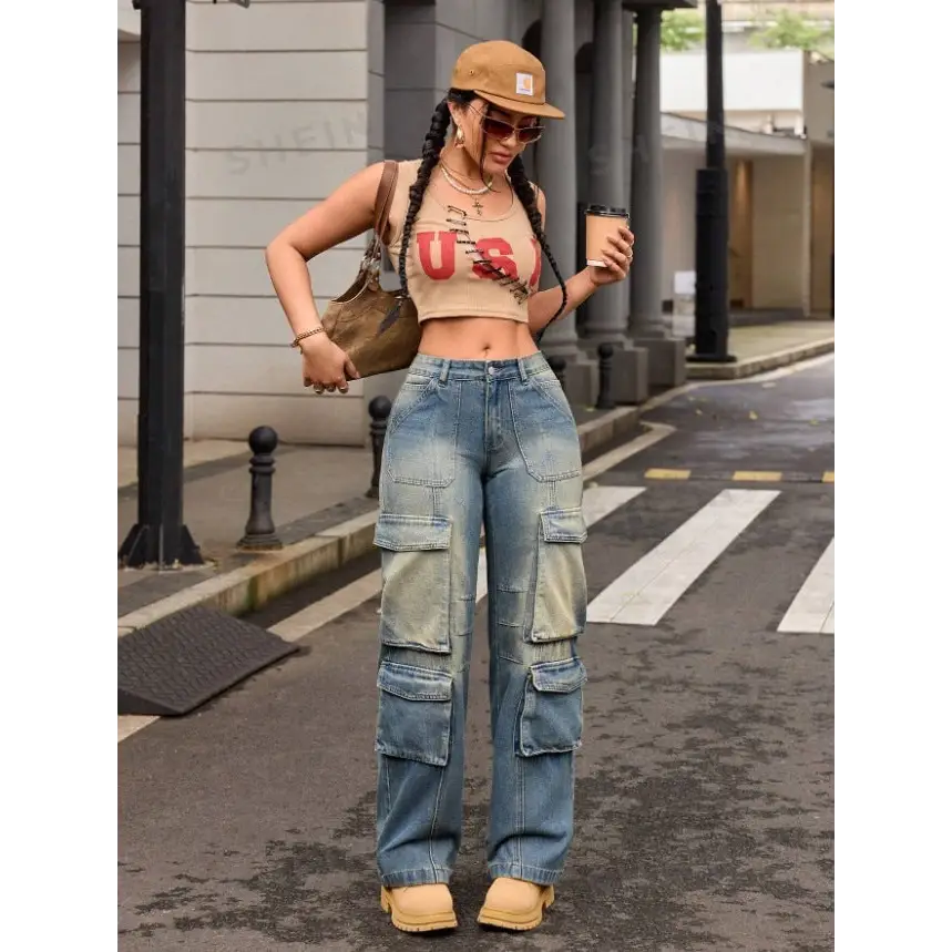 Vintage Multi Pocket Cargo Jeans in Durable High Quality Denim - LauBelle Brand