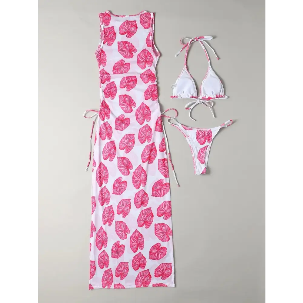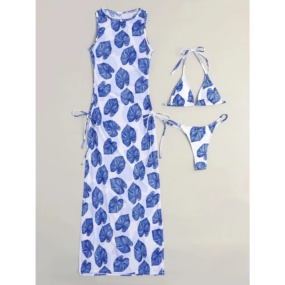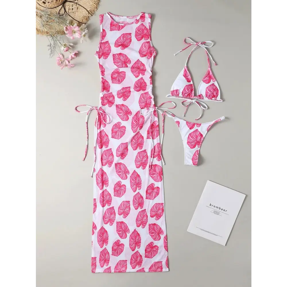 Looking for a stylish and comfortable swimsuit? Look no further than our Meshback Three-Piece Swimsuit! This set includes a bikini top, bottom, and a matching mesh cover-up. The bikini top and bottom feature a flattering and supportive meshback design that adds a touch of elegance to your beach look. The mesh cover-up is perfect for throwing on over your swimsuit for some added coverage, while still keeping you cool and stylish. Made from high-quality materials, this swimsuit is sure to last you through many beach days. So why wait? Get your Meshback Three-Piece Swimsuit today and make a splash!