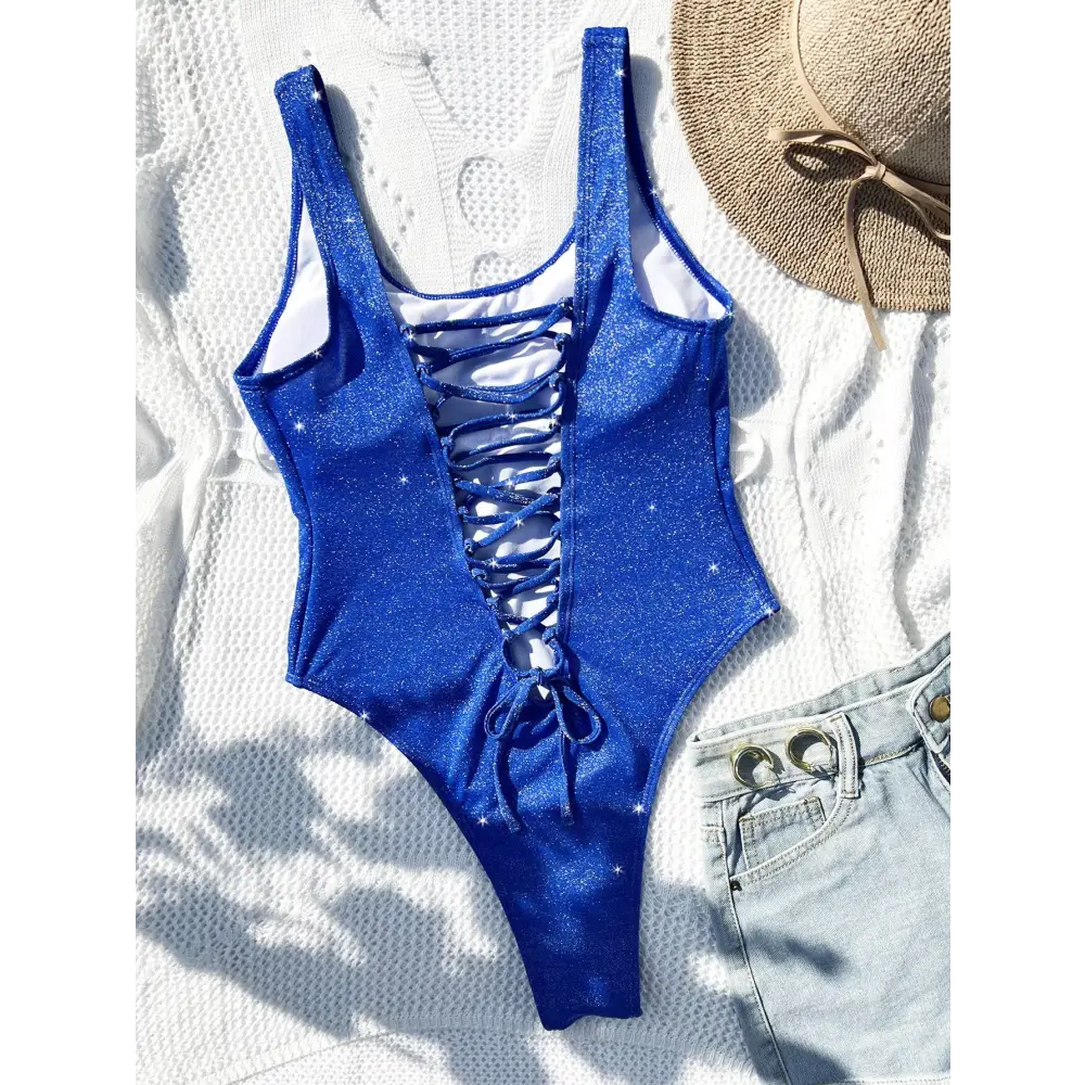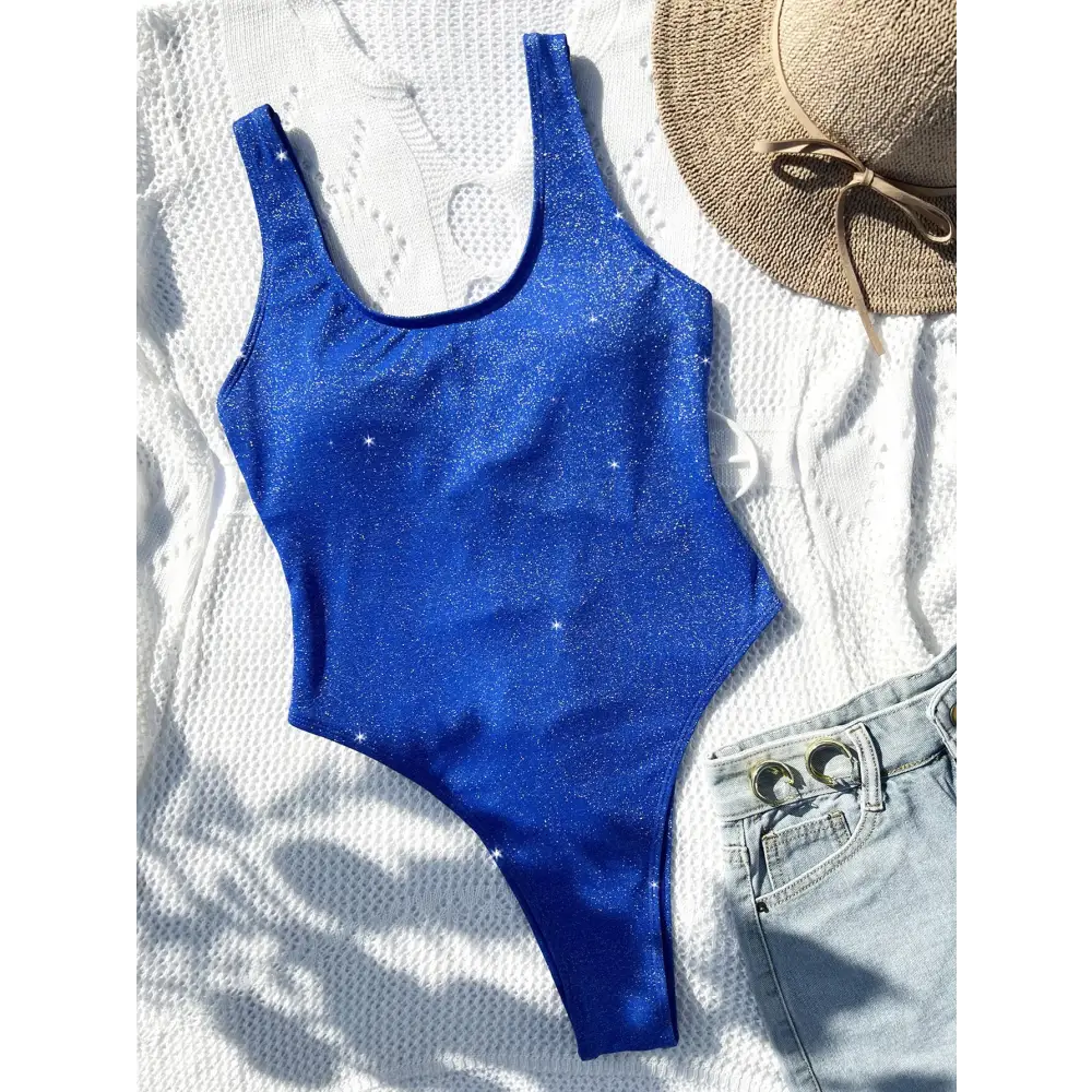 Get ready to make a splash in our dazzling Sparkly Swimsuit! This one-piece swimsuit is perfect for adding a touch of glam to your beach or pool day. The shimmery fabric catches the sunlight and will make you stand out from the crowd. With a flattering fit and adjustable straps, this swimsuit is both stylish and comfortable. The high-quality material is also quick-drying, making it perfect for all-day wear. Whether you're lounging by the pool or taking a dip in the ocean, our Sparkly Swimsuit will make you look and feel your best. Don't miss out on this must-have addition to your swimwear collection!