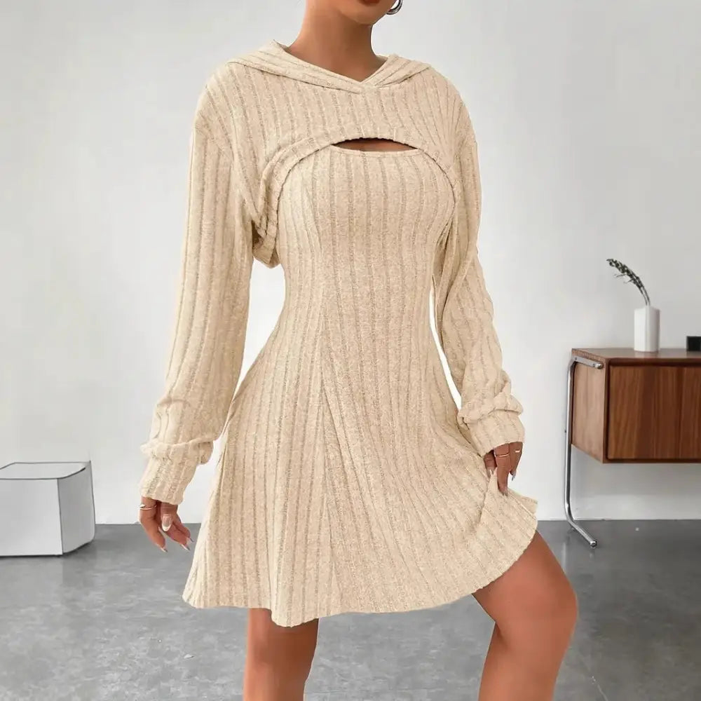 Chic Cozy Duo Hooded Vest and Skirt Set for Fall and Winter