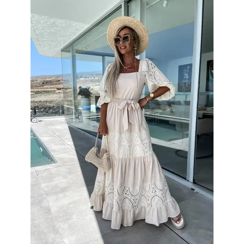 Discover effortless elegance with our Lace Stitching Casual Loose Dress, designed for the modern woman. This stylish piece features intricate lace stitching that adds a touch of sophistication to a relaxed, loose fit. The waist-controlled design, complemented by a chic lace-up detail, allows for a flattering silhouette that suits any body type. Ideal for casual outings or laid-back gatherings, this dress combines comfort with contemporary style. Crafted from high-quality materials, it ensures both durability and breathability, making it a must-have addition to your wardrobe. Embrace femininity and grace with this versatile dress.