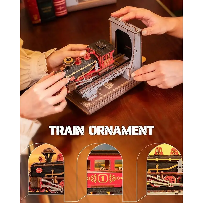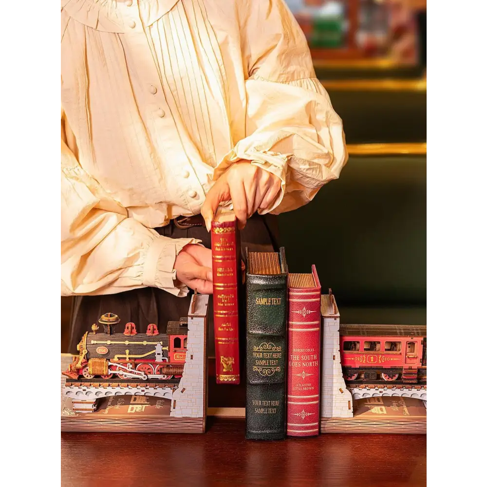 - [UNIQUE DESIGN]: This steam train book nook model seamlessly combines the vintage charm of classic locomotives with the practical functionality of a bookend. The clever split design makes it look as though the train is moving through the books, adding dynamic movement, fun, and artistic flair.