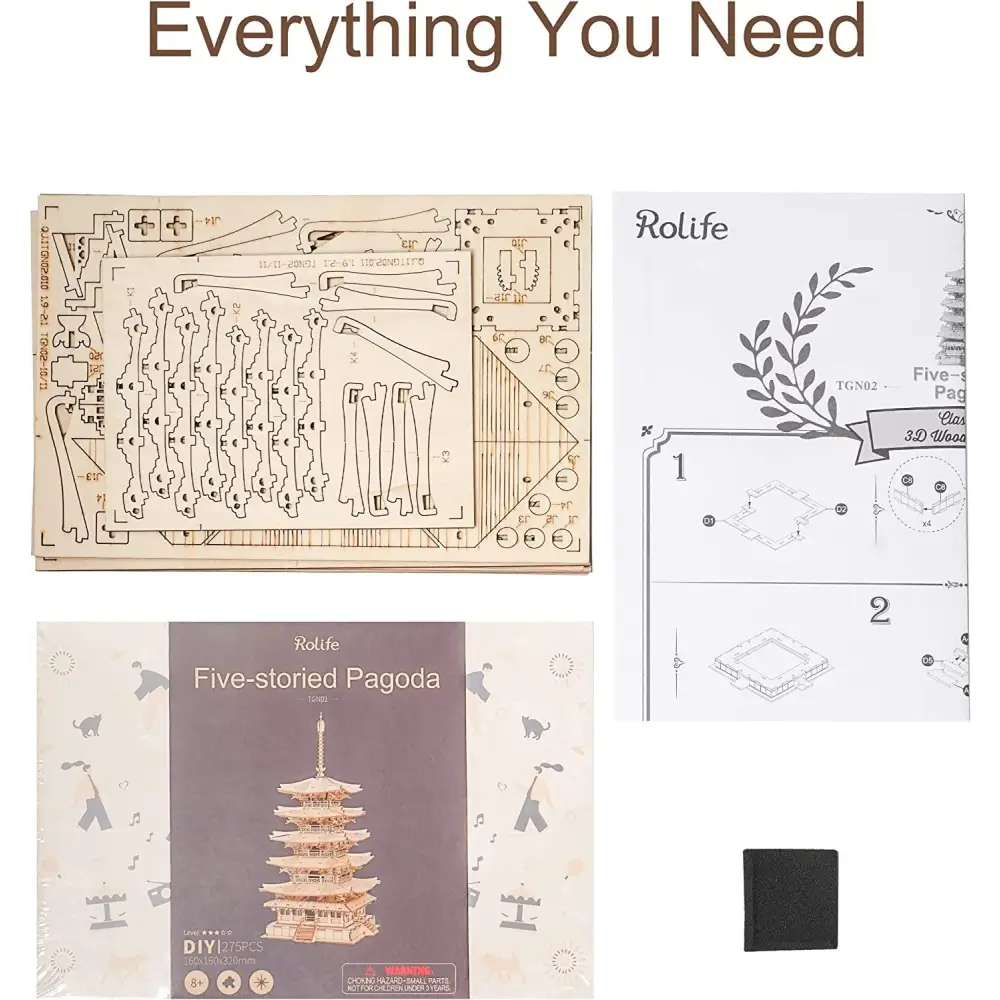 Robotime Five-storied Pagoda 3D Wooden Model Kit 275 Pieces - LauBelle Brand