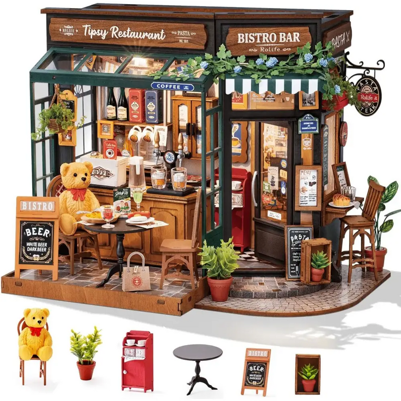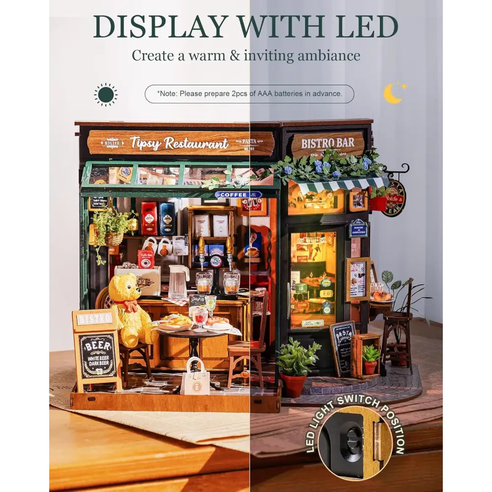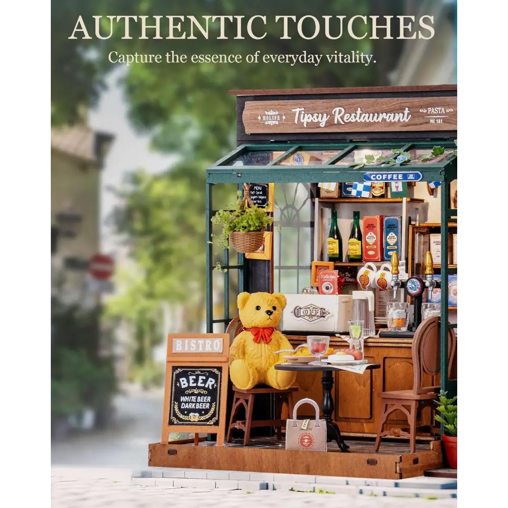 Rolife DIY Miniature House Kit – Tipsy Restaurant Wooden Model Building Set for Adults, Home & Desk Decoration, Bookshelf Craft Kit - LauBelle Brand