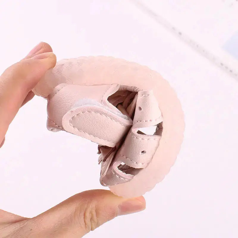 The shoes feature a durable rubber sole with a non-slip grip, providing stability and traction for those wobbly first steps. The soft and breathable material ensures maximum comfort for your child's delicate feet.