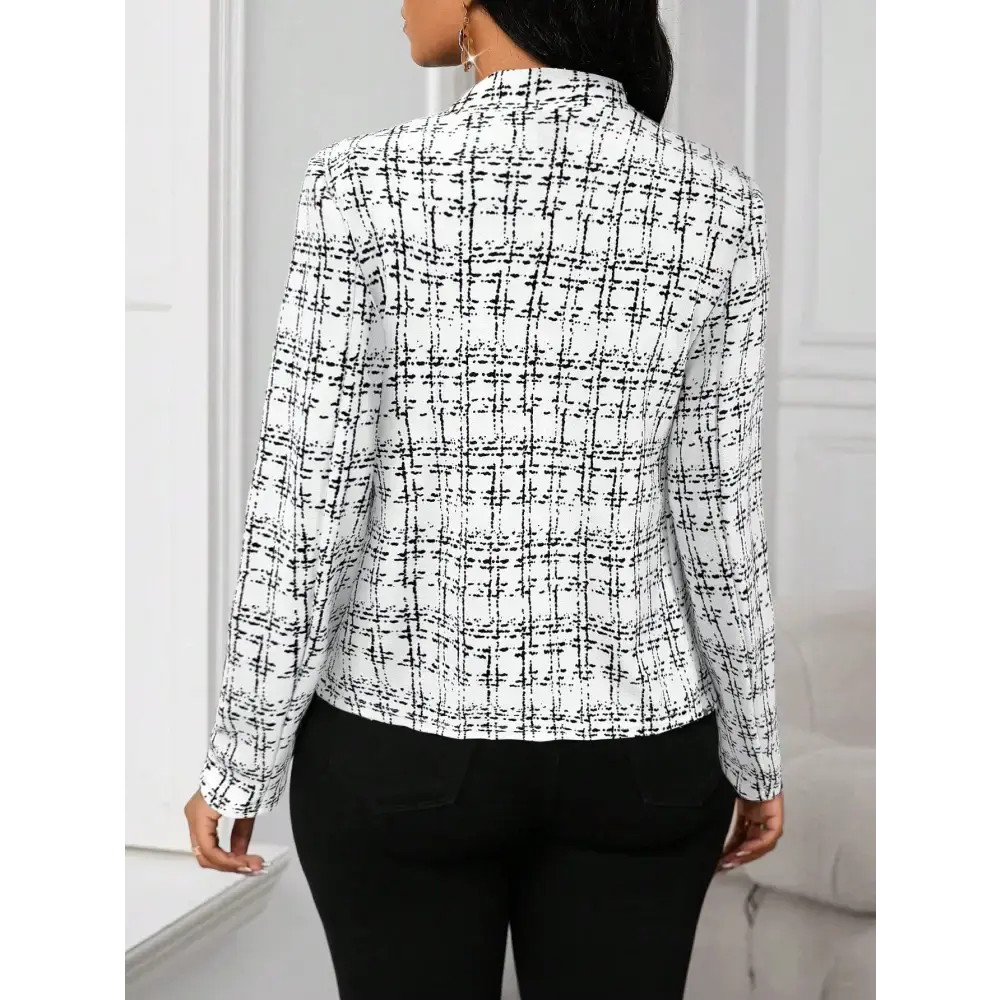 Elevate your wardrobe with the Plaid Elegance Women's Open Front Blazer Jacket. Designed for the modern woman, this blazer combines classic plaid patterns with contemporary style. Crafted from premium fabric, it offers a perfect blend of comfort and sophistication. The open front design makes it versatile, allowing you to dress it up for the office or down for a casual outing. Its tailored fit enhances your silhouette, while the timeless plaid print adds a touch of elegance to any outfit. Make a statement and embrace effortless chic with this must-have blazer jacket.