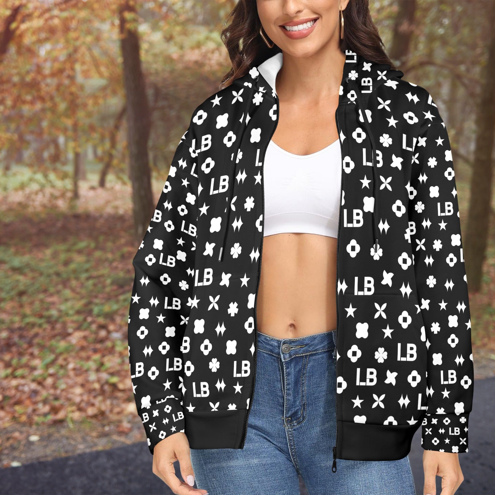 LauBelle - Women's Fleece Full-Zip Hoodie - Black