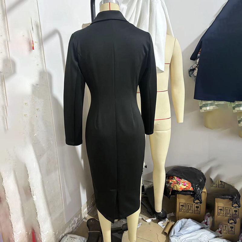 Elevate your wardrobe with the EleganceV Blazer Midi Dress and experience unparalleled elegance and versatility.