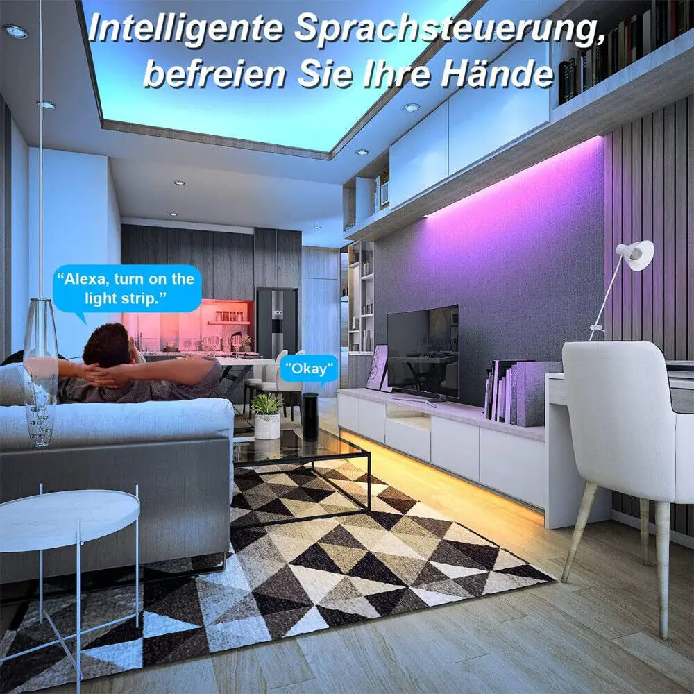 Smart App & Voice Control – Connect via WiFi (2.4G only, 5G not supported) and control the strip with the "Smart Life" app or your voice using Amazon Alexa / Google Home Assistant. Adjust color, brightness, and change speed to create your desired atmosphere. Supports 16 million colors. (Note: Segment color-changing effects not supported.)