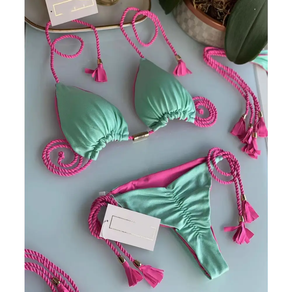 Discover the perfect companion for your beach adventures with the BraidWave Triangle Bikini Bag. Crafted from premium, water-resistant materials, this chic bag ensures your swimsuits stay dry and organized. The trendy triangular design offers both style and functionality, featuring a spacious interior with a secure zip closure. Its lightweight build makes it easy to carry, whether you're heading to the pool or the shore. The BraidWave Bikini Bag is not just practical but also a fashion statement, combining elegance and durability. Elevate your beachwear accessories with this must-have addition to your summer collection.