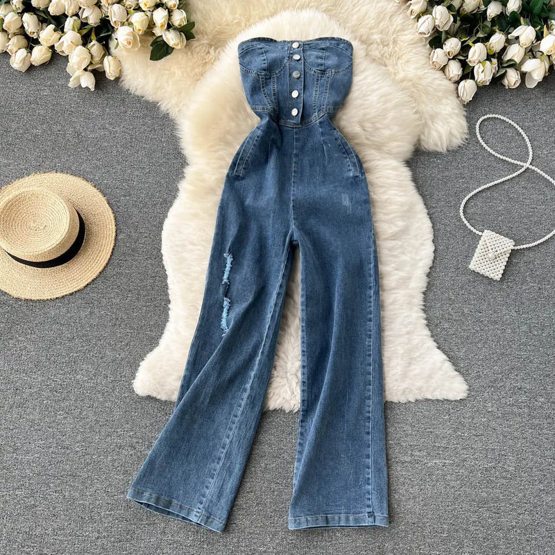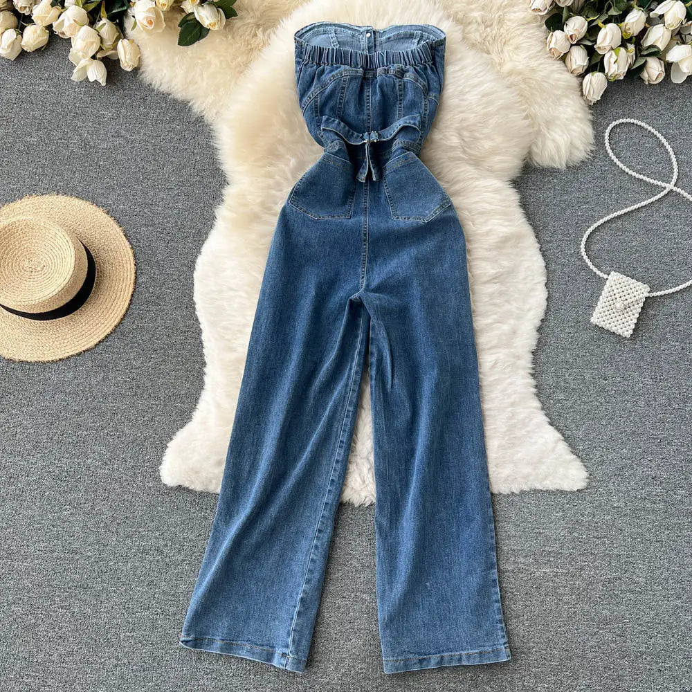 • ChicSpring High Waist Denim Tube Jumpsuit for Women - LauBelle Brand