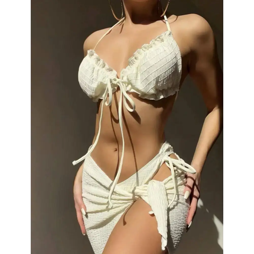 Get ready to make a splash this summer with our Fab Pleated Swim Set! This stylish and comfortable set includes a pleated bikini top and matching high-waisted bottoms. Made with high-quality materials, this swim set is designed to provide both support and flexibility while you swim and soak up the sun. The pleated detailing adds a touch of elegance to this trendy swimwear. Available in a variety of colors and sizes, the Fab Pleated Swim Set is perfect for any beach or pool day. So don't wait, grab yours today and make a statement at your next swim outing!