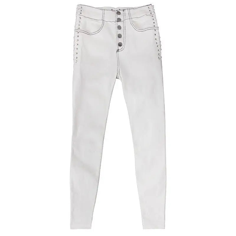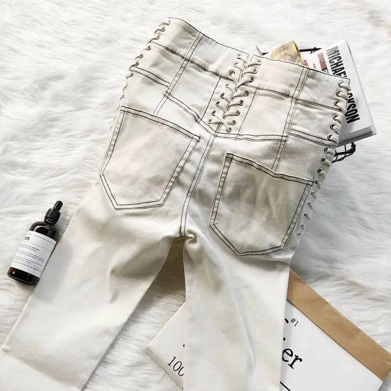 Discover the perfect blend of style and comfort with our FlexiFit Drawstring White Jeans. Crafted from high-quality, breathable fabric, these jeans offer a modern twist on a classic silhouette. The flexible waistband with an adjustable drawstring ensures a custom fit, providing all-day comfort for any occasion. Designed with versatility in mind, these jeans feature a clean, white finish that effortlessly pairs with any outfit. Whether you're dressing up for a night out or keeping it casual, the FlexiFit Drawstring White Jeans are your go-to choice for a chic, contemporary look.