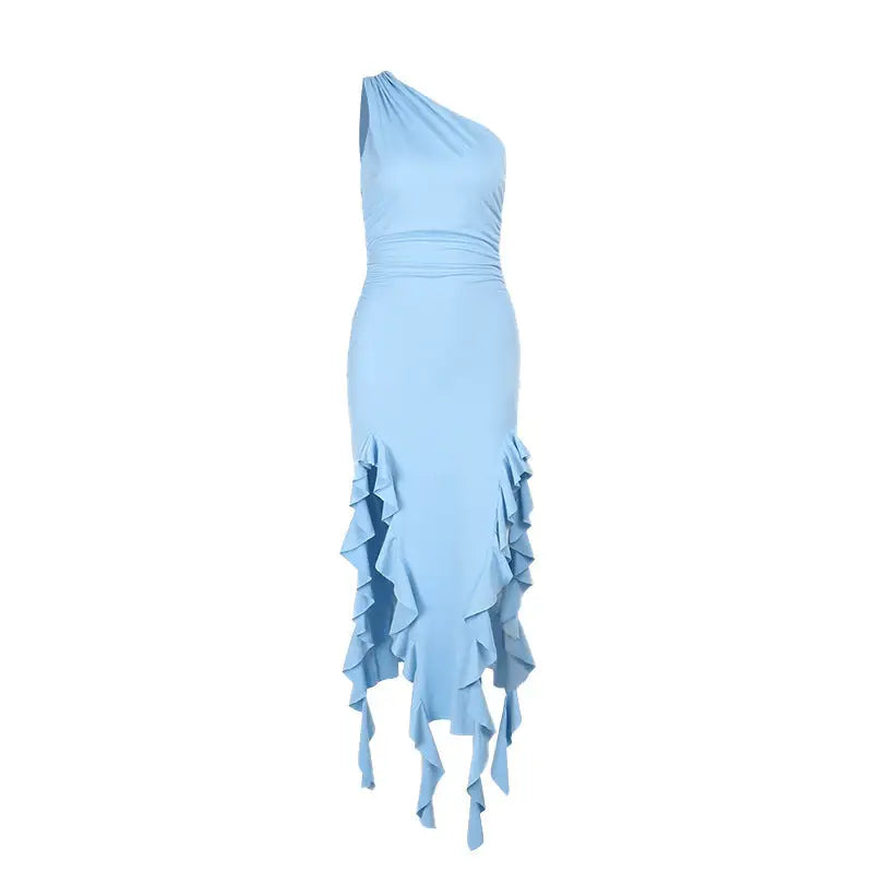 • Flirty Ruffle Sling Dress with Delicate Neckline and Hem Detailing - LauBelle Brand