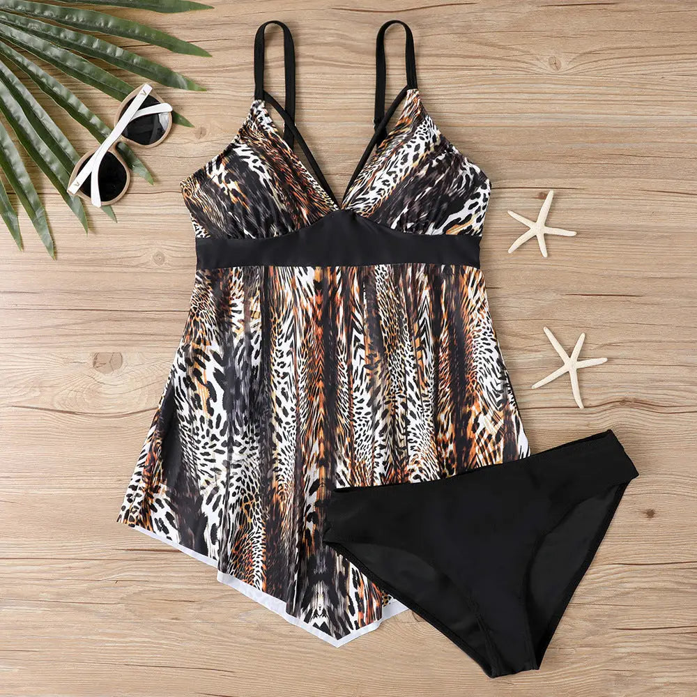 • Leopard Printed Split Skirt Swimsuit - LauBelle