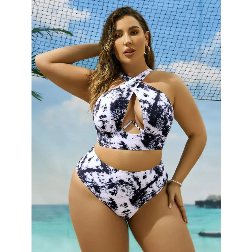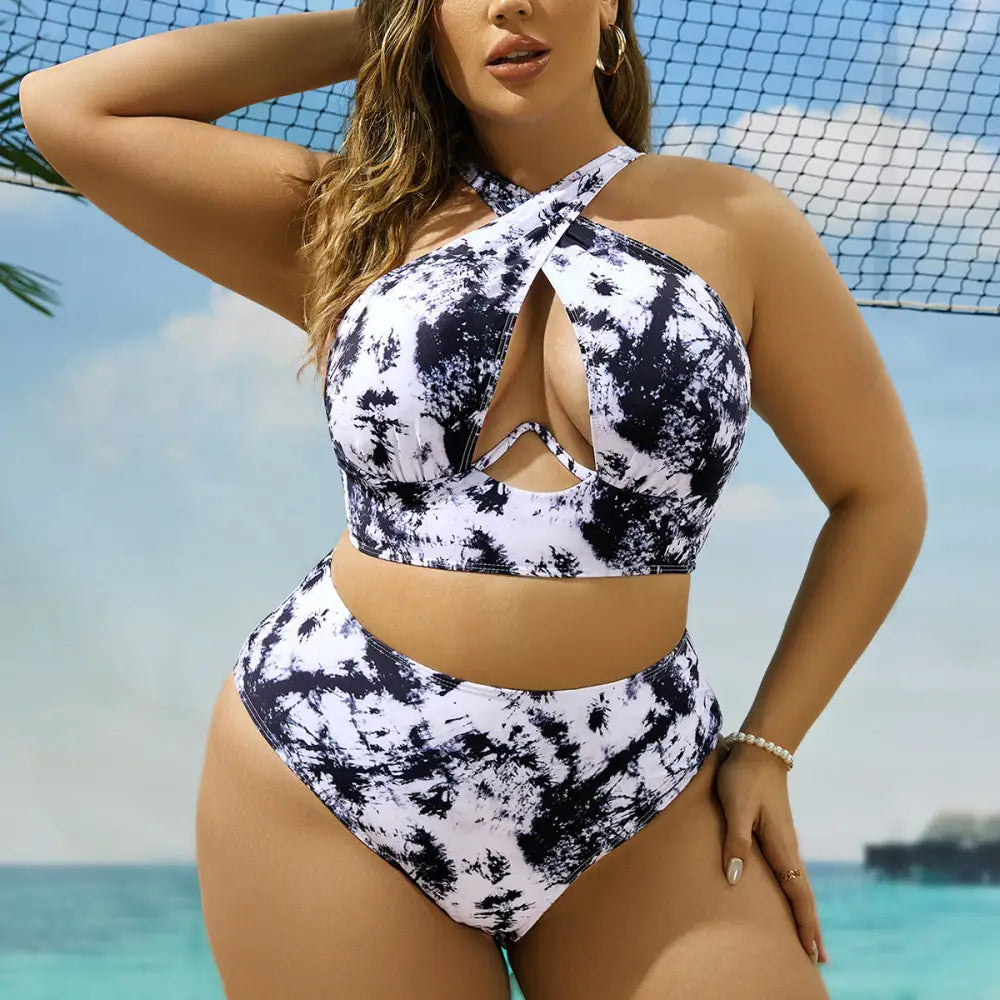 • Printed Cross Bikini Suit with Unique Crisscross Design - LauBelle
