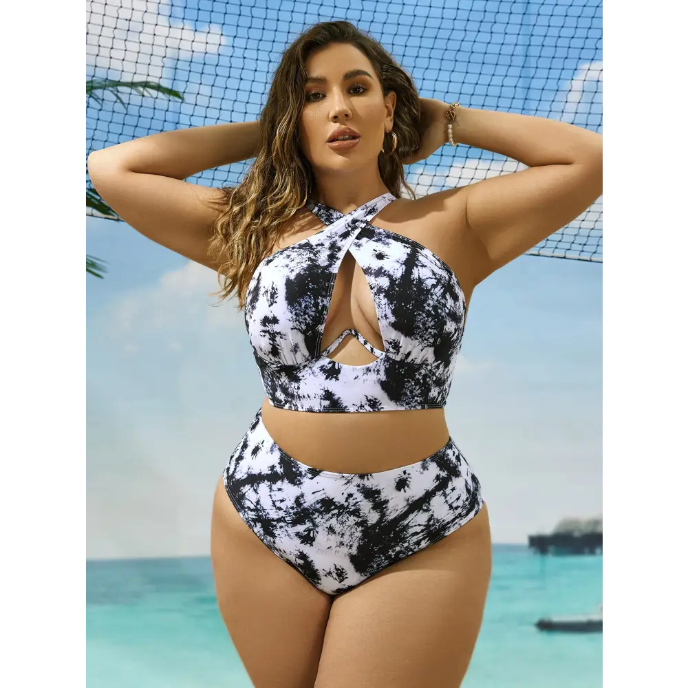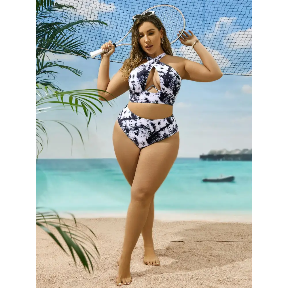 Printed Cross Bikini Suit with Unique Crisscross Design - LauBelle