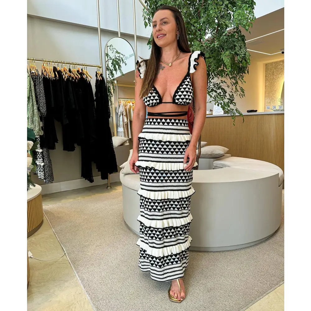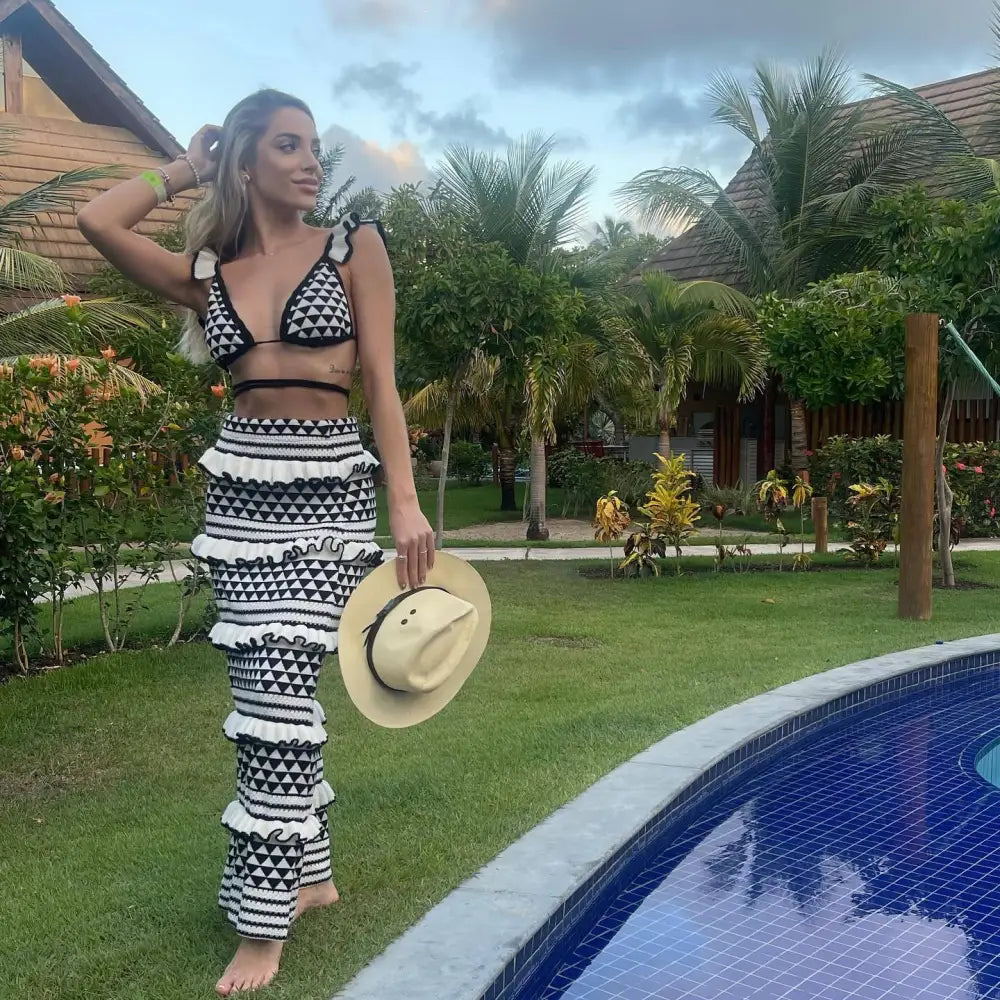 Dive into elegance with the RippleStripe Ruffled Bikini & Knit Skirt Set, a stunning fusion of style and comfort. The bikini features playful ruffles that create a chic, modern silhouette, while the ripple stripe pattern adds a touch of sophistication. The accompanying knit skirt offers versatility, seamlessly transitioning from beachwear to casual outings. Crafted from high-quality materials, this set promises durability and comfort, making it an essential addition to your wardrobe. Whether lounging by the pool or enjoying a seaside stroll, embrace effortless style with this unique ensemble designed to turn heads wherever you go.