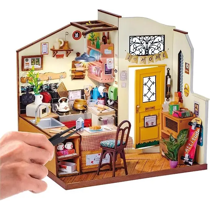 Rolife Dollhouse Happy Kitchen House DIY Miniature Room Kit-Handmade House-Diorama Kit Home Decoration-Miniature Model to Build- Gifts for Boys Girls Women Friends