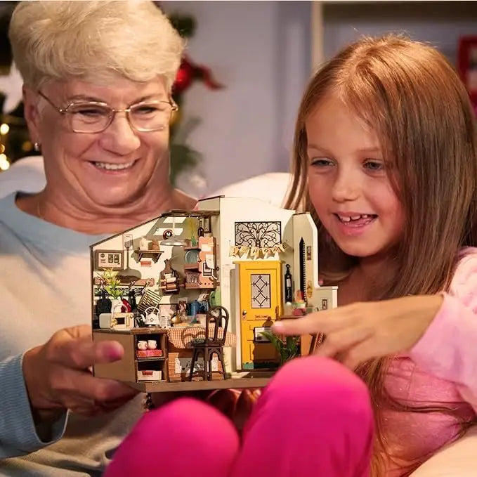 【 Dollhouse Feature 】 To build it, patience is the ultimate key to success.It can be assembled with family, friends and lovers to experience the pleasure of hands-on.A sense of accomplishment will come when it is finished.You can redecorate it and add in your new creation.After turning on the light, it makes a comfy, cute room to look at once and awhile.