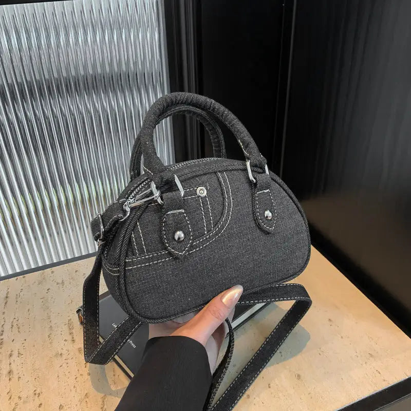 Elevate your fashion game with the Shell Denim Bag in Black and Blue. Order now and add this versatile bag to your collection!