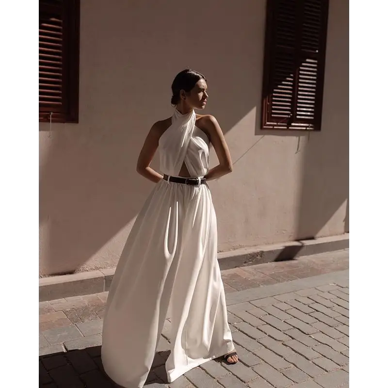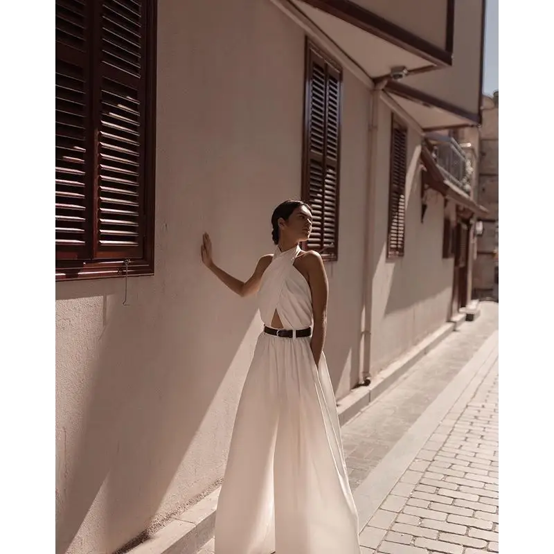 Slinky Halter Backless Jumpsuit in Lightweight Luxe Fabric