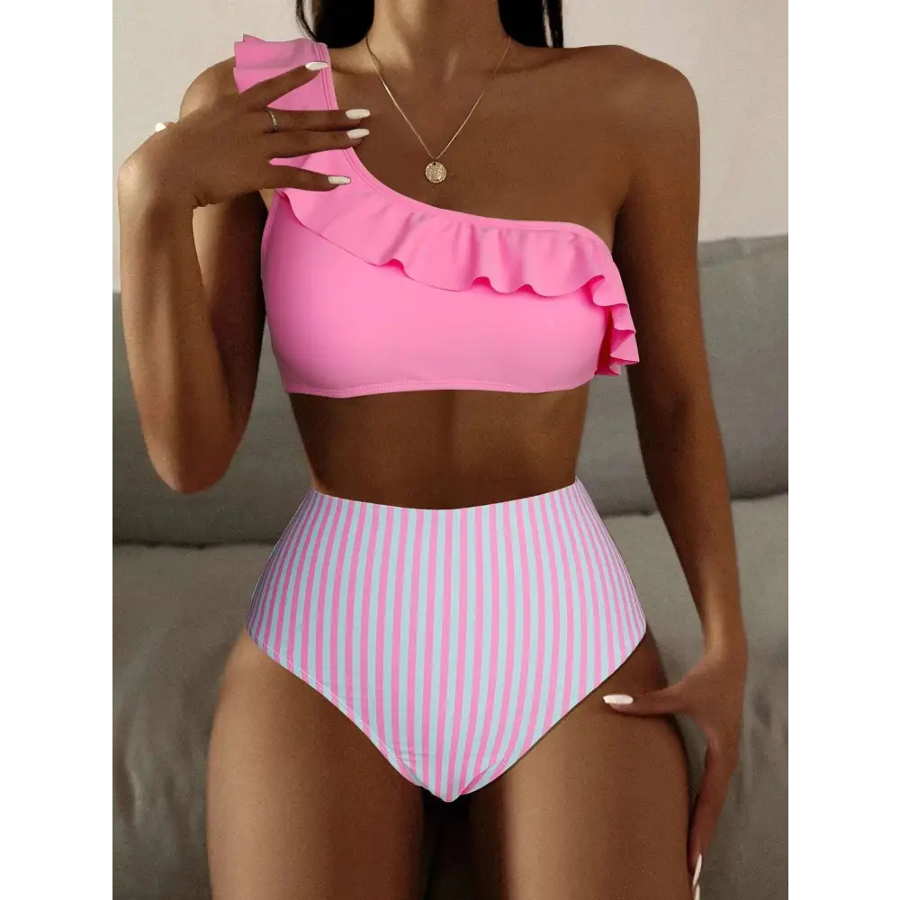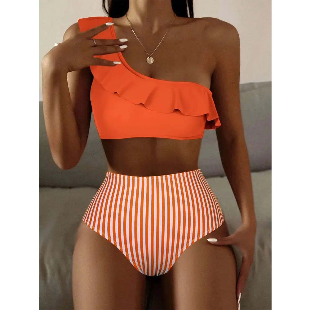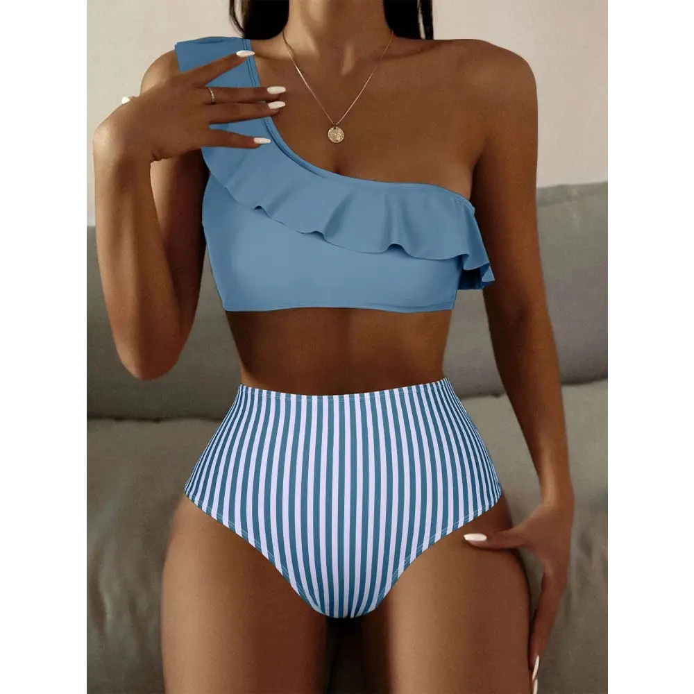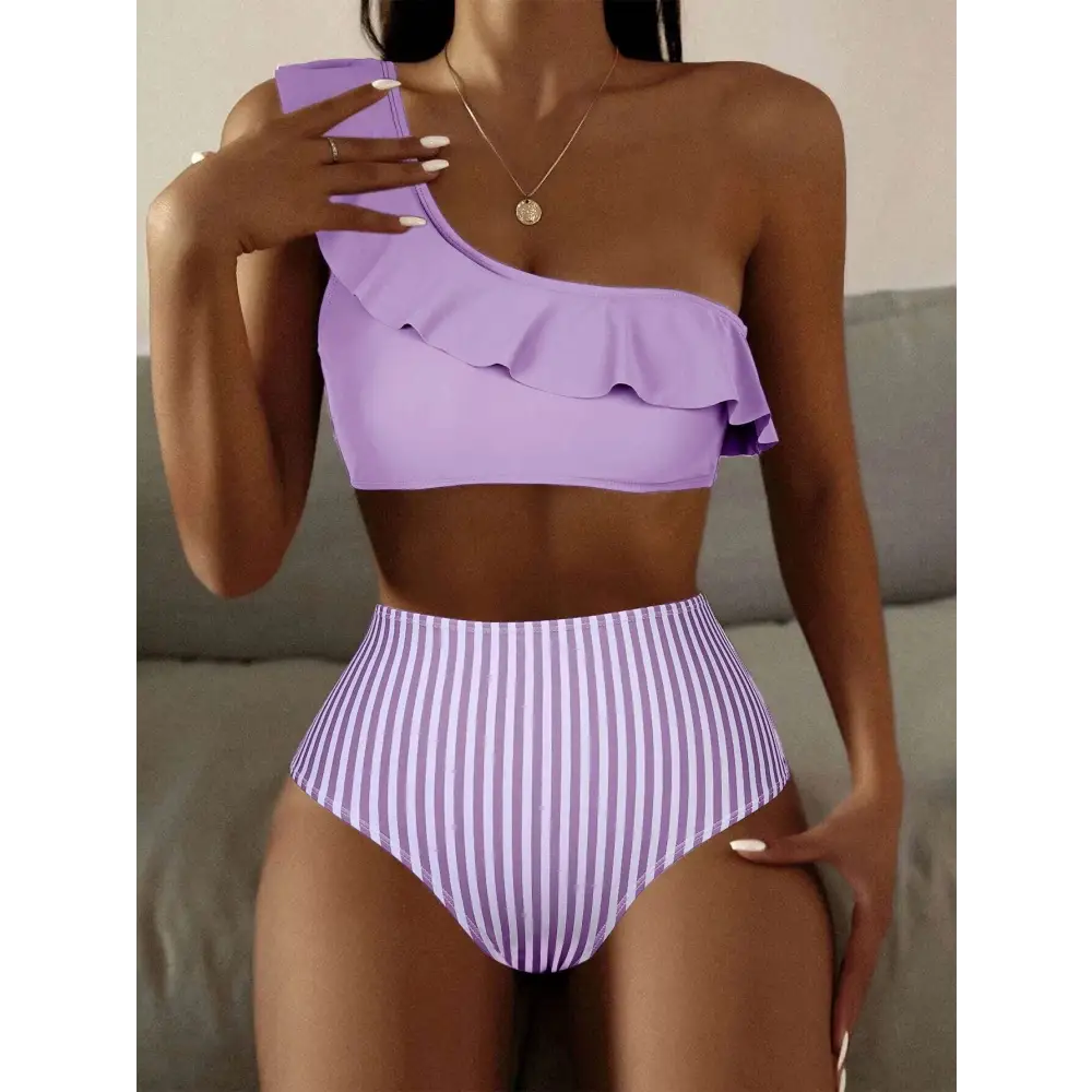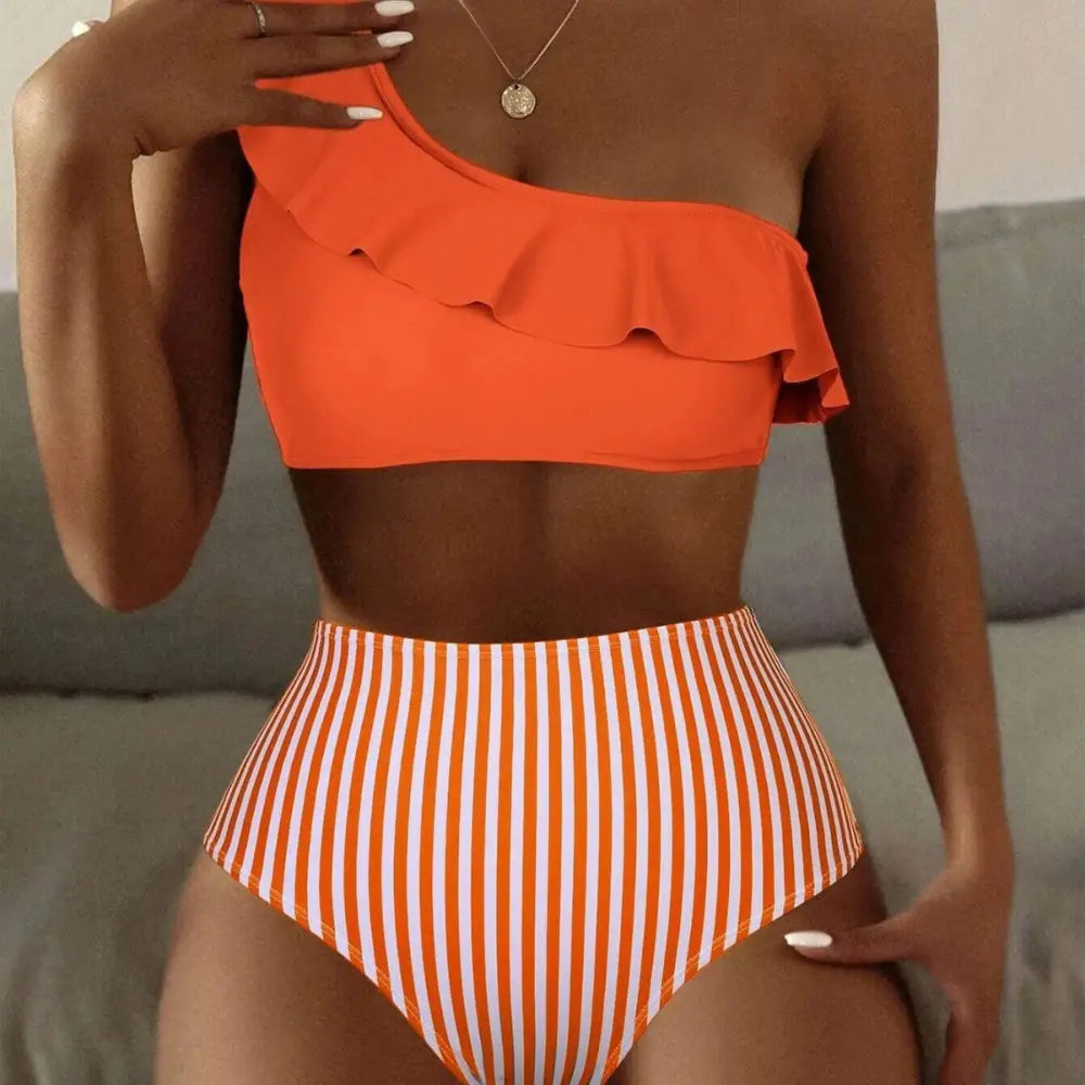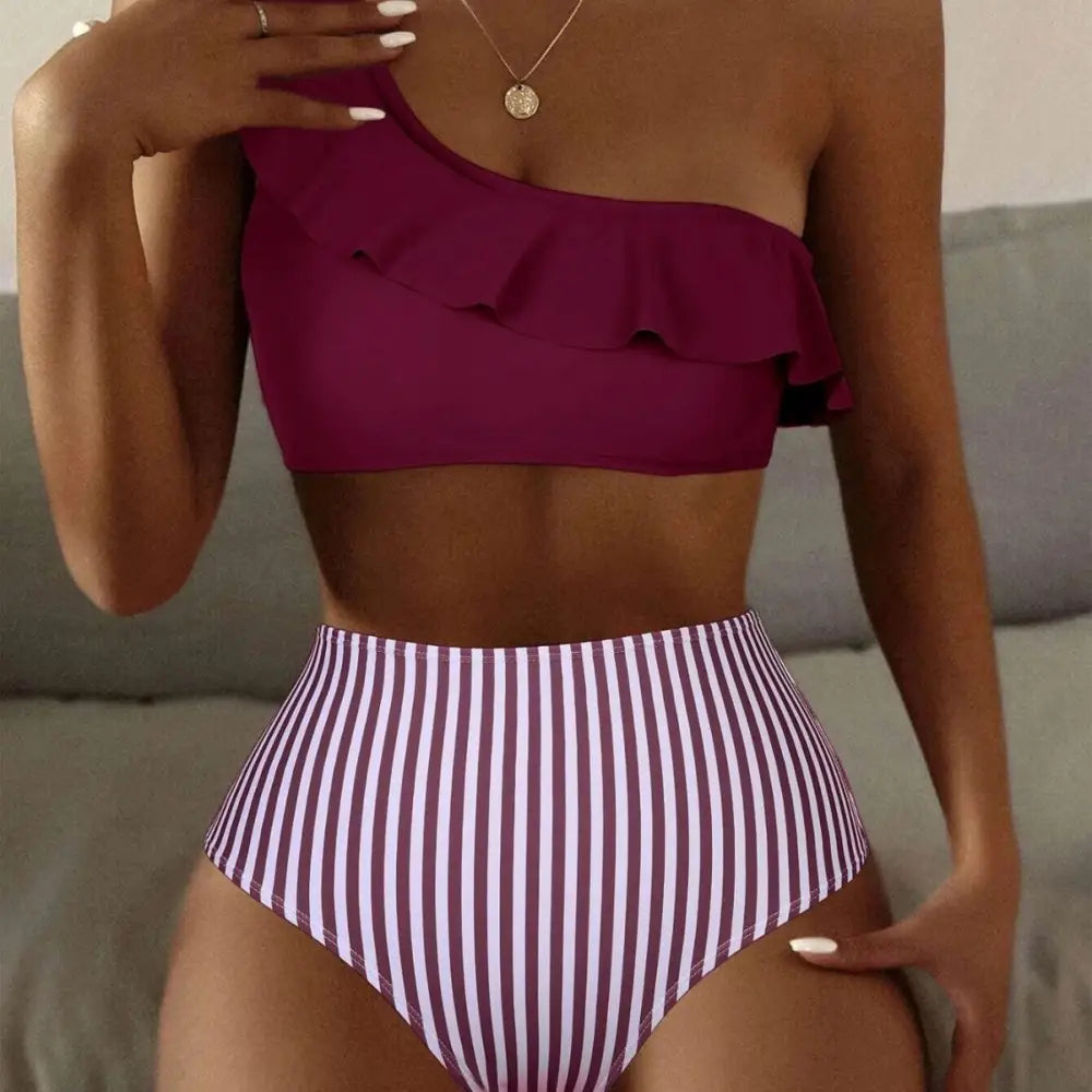 Elevate your beach style with the StripeSolid Split Bikini, a stunning women's swimwear set designed for comfort and elegance. This chic ensemble features a unique blend of bold stripes and solid colors, offering a modern twist on classic swimwear. The top provides adjustable straps for a customizable fit, while the bottom offers moderate coverage perfect for any beach outing. Made from high-quality, durable materials, this bikini ensures a comfortable and confident experience whether you're lounging by the pool or diving into the waves. Embrace the sun with the StripeSolid Split Bikini.