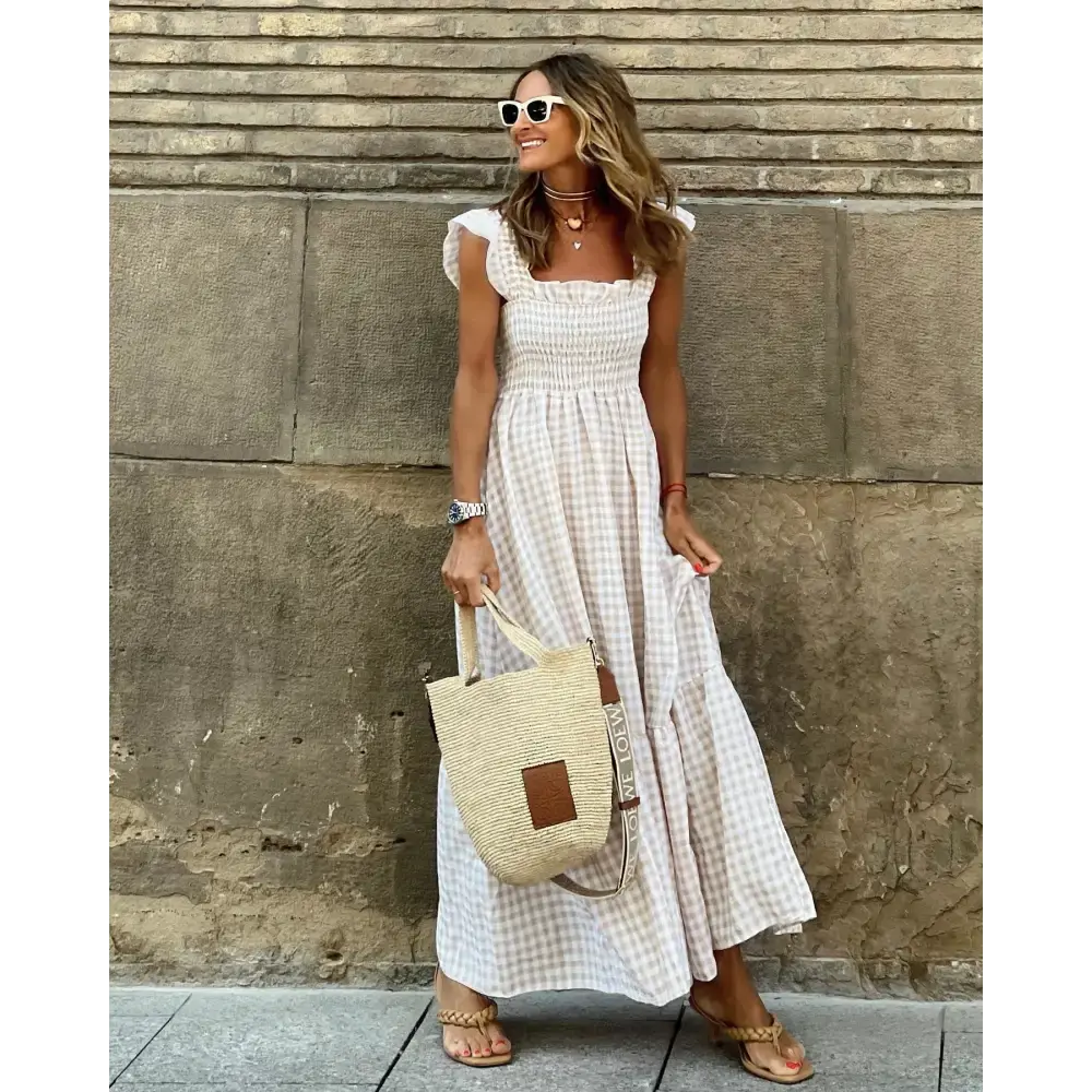 • Sunny Plaid Ruffle A-Line Dress for Beach Chic Occasions - LauBelle Brand