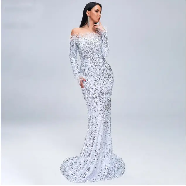 Twilight Gown with Deep V Neckline and Flowy A Line Silhouette