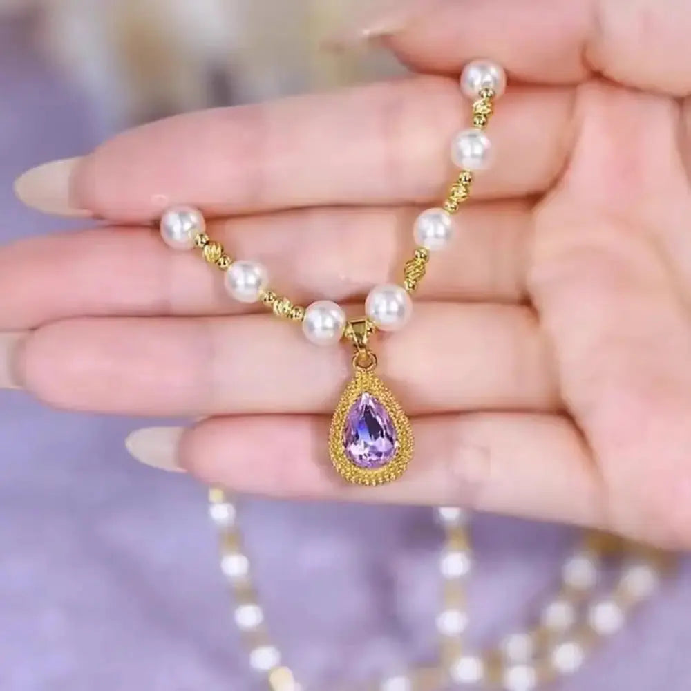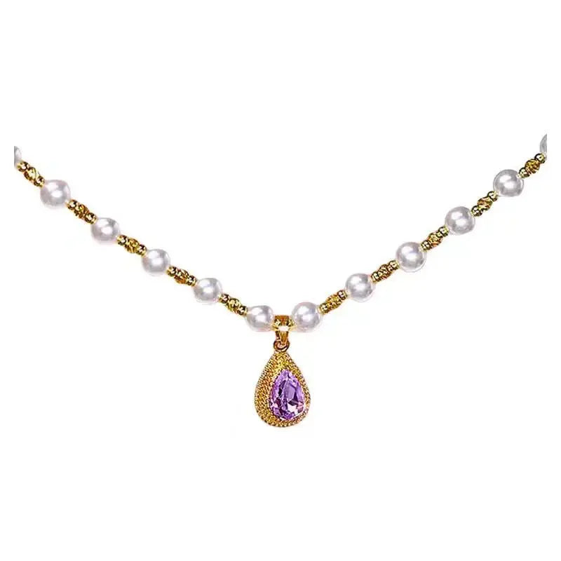 Discover elegance with the Violet Raindrop Pearl Necklace, a captivating piece that combines timeless beauty with modern sophistication. This exquisite necklace features lustrous violet freshwater pearls, each carefully selected for their unique color and sheen. The pearls are gracefully arranged in a raindrop pattern, creating a stunning visual effect that captures the essence of elegance. Perfect for enhancing any outfit, this necklace is an ideal accessory for both formal occasions and everyday wear. Embrace the charm and grace of the Violet Raindrop Pearl Necklace and let it become the centerpiece of your jewelry collection.