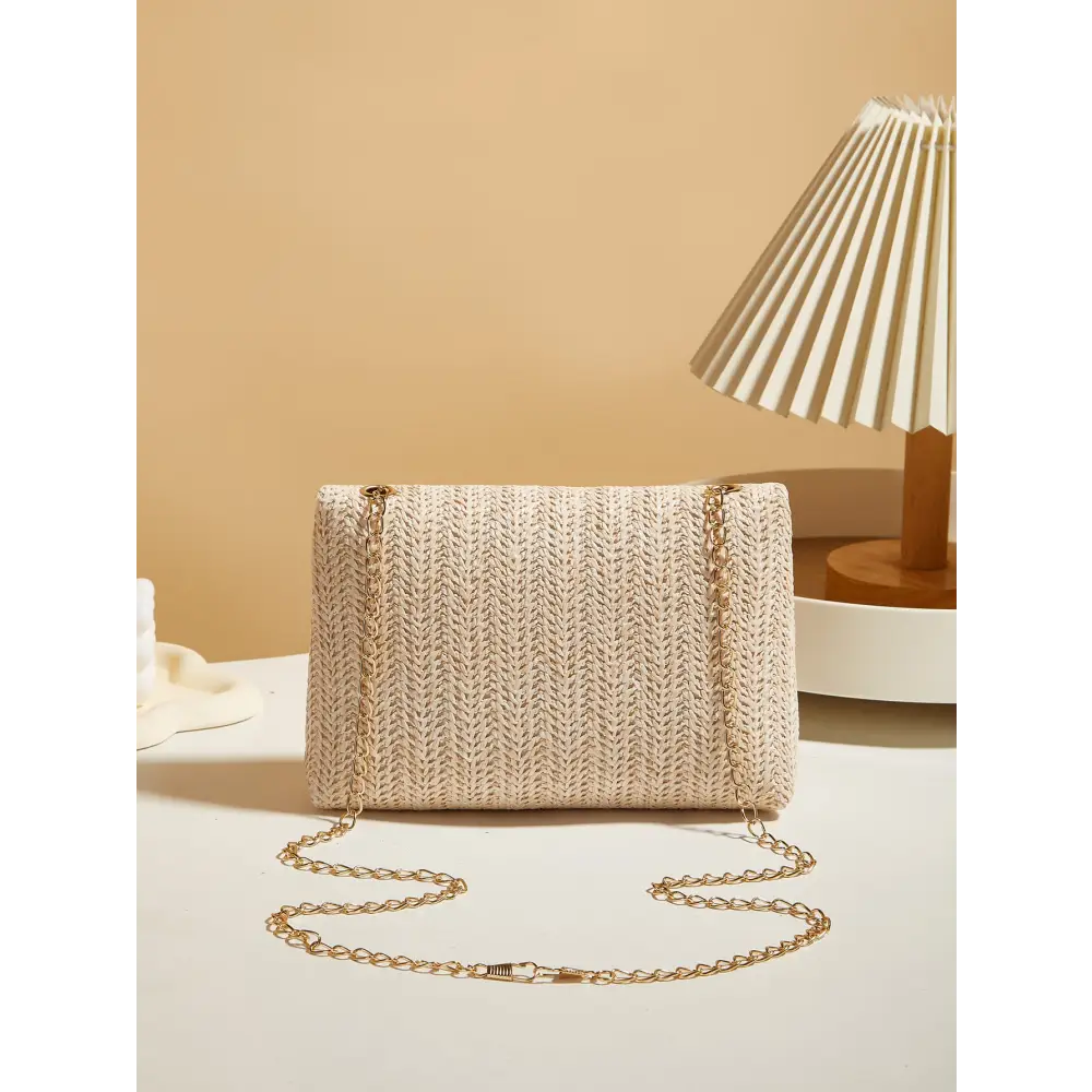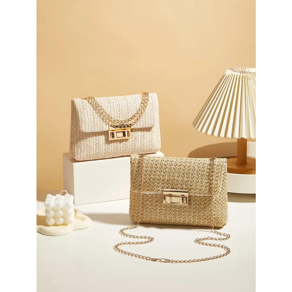 Womens Straw Square Handbag with Lock Closure