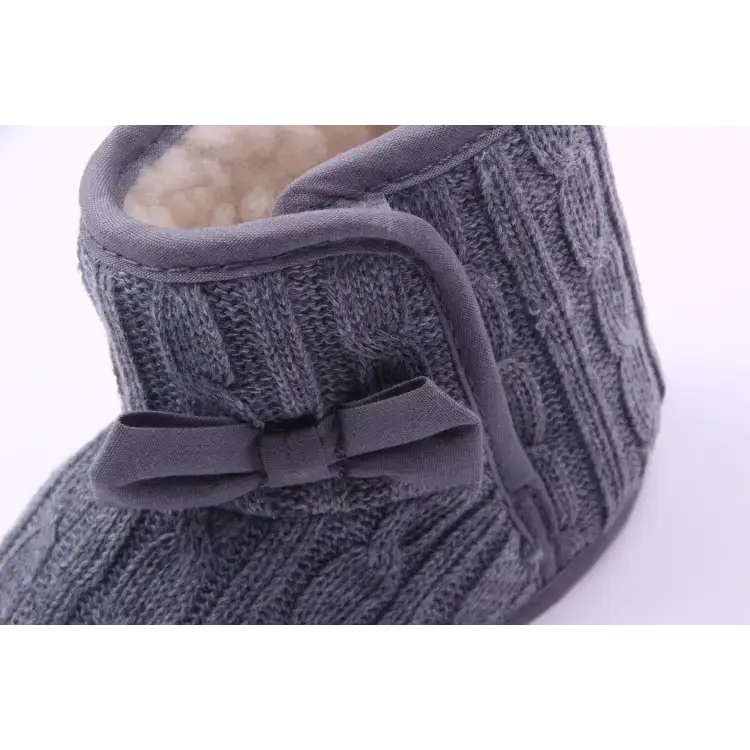 Introducing our cozy and stylish Woolly Bow Baby Booties! Made from soft and warm wool material, these booties will keep your little one's feet snug and comfortable. The adorable bow design adds a touch of cuteness to these already charming booties. Designed for babies, these booties have a perfect fit and ensure maximum comfort for your little bundle of joy. The non-slip sole provides stability and safety as your baby learns to walk. Available in a variety of colors, these booties are the perfect addition to any baby's wardrobe. Treat your little one to these Woolly Bow Baby Booties today!