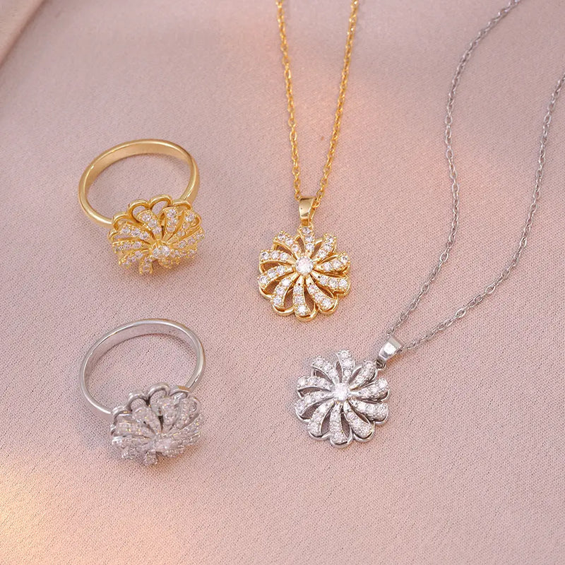 Make a statement with this stunning Zircon Flower Necklace Ring. This unique piece features a delicate flower design, crafted with sparkling zircon stones that catch the light beautifully. The pendant is attached to a dainty chain, making it perfect for everyday wear or a special occasion. The adjustable length allows for a perfect fit, while the secure clasp ensures it stays in place. This necklace can also be worn as a ring, adding versatility to your jewelry collection. Add a touch of elegance and sophistication to any outfit with the Zircon Flower Necklace Ring.